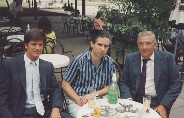 In 1966 I received a call from my uncle Leo Mahdjoubian. He was an Armenian who had fought with the Black Watch in WW-I and had moved to Argentina after the war. He stayed at a pensión run by my grandmother Ellen Carter and soon was part of the family. Uncle Leo told me, "Your old man George has kicked the bucket. He died on the street and was taken to the Hospital Pirovano by a police sargeant. You have to go to the police station to sign a document." He told me he was sorry and rang off. At the police station the desk sargeant told me that there was some sort of mistake as my father's son had already been there and signed the papers. That's how I found out I had a half brother. I met Enrique the next day. I have no idea to this day how he was able to find my phone number, why it was Uncle Leo who called me in the first place, and how Enrique had learned of George's death. When I met Enrique, who spoke no English, I was struck by his resemblance to my father. He had the same blue eyes. Enrique was about 12 years older than I was. I met a couple of Enrique's sons. His sons looked more like my father than I did. Enrique offered to help pay George's funeral. With my $1.00 US Dollar monthly pay as an Argentine Navy conscript I was going to need need some help. I turned Enrique down. The sargeant, who had taken my father to the hospital, had called me. At a corner boliche (cafe) he placed in my hand a sum of money that subsequently paid for a modest funeral. The sargeant had removed all of my father's posessions from his pocket saying that in the hospital they would have disappeared. He told me he had known my father. My father (above, left) had been working to save up money to bribe a general to get me out of the service so I could go home to Mexico. This was the money he had found in my father's pocket. Years later, in 1989, Enrique (right), his son Patricio (left) and I sat for coffee at La Biela. Patricio took out a small stone from his pocket and threw it in my direction. "I went to George's grave at Chacarita Cemetery. He's not there anymore. A Mrs. Gomez is buried there. It seems you didn't pay for perpetuity. Maybe this stone was close to his bones before they threw them away." My mother, who was a beautiful swimmer learned to dance the tango with my father. Enrique's mother told me that she was not aware that my father had ever danced the tango, "George was an excellent swimmer and he taught me how to swim."
