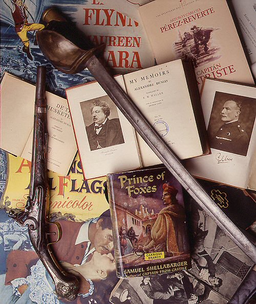 The hot dry summer weather keeps my night table neat. There is an ordinary pile of books on it that I am reading or to be read. All this changes as soon as it gets cool and the rains come. Rosemary, my unusually understanding wife, will begin to question my sanity as not only will the night table lose its order but our living room floor will be strewn with turn-of-the-century hardcovers by Alexandre Dumas and Rafael Sabatini. On some days I may disappear to the basement TV room to see, in one sitting, Douglas Fairbanks in The Black Pirate, Errol Flynn in Captain Blood (Up the rigging you monkeys!”), and Cutthroat Island with Geena Davis. On another day it could be Fairbanks in the Adventures of Zorro, and Ronald Colman in Prisoner of Zenda.