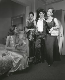 I had the opportunity to shoot with him again in November 1997 when I did a fashion spread for the Georgia Straight that featured a narrative involving three women (female Ballet BC dancers) being holed up in a cheap hotel (Room 615 of the Marble Arch, then owned by my pal Tony Ricci) who lure two men (Todd and another Ballet BC male dancer) and then dispose of them with a snub-nosed 38. In the photo from left to right, Andrea Hodge, Gail Skrela, Todd Woffinden and Lauri Stallings. During rest periods I was "shocked" (out of ballet character?) that Todd was watching American football in another room. It was then that I noticed that he resembled that other good old American and favourite actor of mine, Sam Shepard.