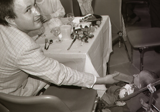 Through the years Joey has been so pursuasive that I even photographed his wedding. Note, Wimpy Roy, a.k.a. Brian Goble (Subhumans, D.O.A.) feeding his baby at the ceremony.