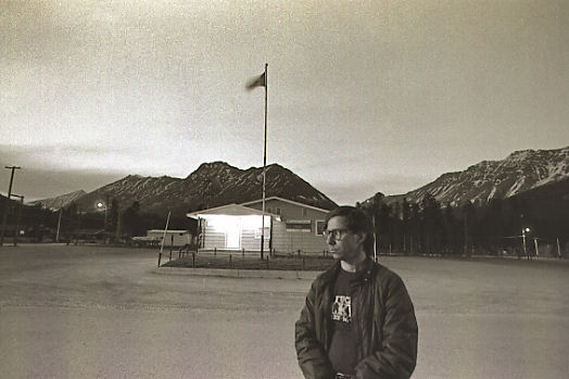 It was in Cassiar that I saw for the first time and for several nights the beautiful Aurora Borealis. At right I am posing with my class and above it's a self portrait by the Cassiar post office. I took the picture at midnight using a technique called extended range night photography.