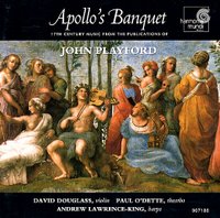 Every other Monday when I take Rebecca to her piano lessons with Nikolai Maloff I always play piano CDs in the car. Just in case she thinks I may be overdoing it I throw in some baroque countertenors (Matthew White), music from Mozart operas and early baroque violinist David Douglass's, Apollo's Banquet - 17th Century Music From the Publications of John Playford ( Harmonia Mundi 93046 71862). Douglass is accompanied by Paul O'Dette on theorbo and Andrew Lawrence-King on harps.