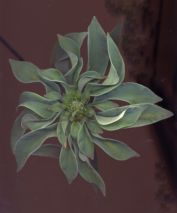 Hosta 'Buckshaw Blue' is one of the bluest of my blue hostas. It has white flowers. By the beginning of June the leaves are a startling blue-green. This year Buckshaw Blue surprised me with a vegetative aberration (hosta experts are not sure why hostas do this) that is a combination of a large hosta flower with extra thick, small and narrow leaves. The whole structure which I would call a rosette is 8 inches across.