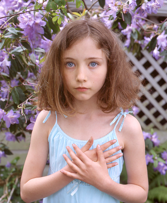 Last week I photographed Rebecca in front of my Rhododendron augustinii 'Marion McDonnell' and as you can see that while it is very beautiful it is not really blue. It is located not far from where I photographed Rebecca a few years ago holding the flower of Hydrangea macrophylla 'Blue Wave' which really is blue to the eye but not as blue to film.