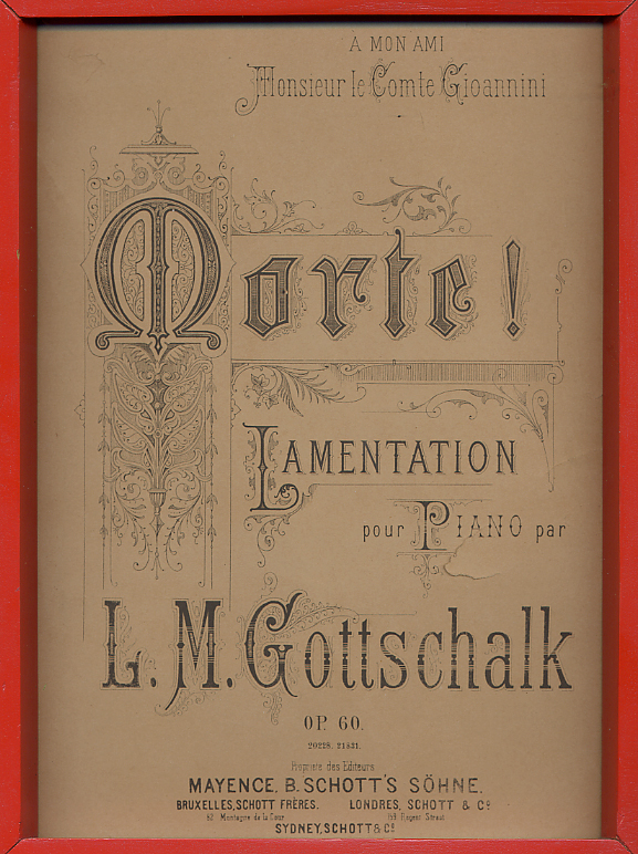 As for Morte! the legend is that it was the last music Gottschalk (who was terminally ill) played at a concert in Rio de Janeiro on November 25, 1869. Actually it was the last complete work he ever played as he had begun his Tremolo when he had to stop.