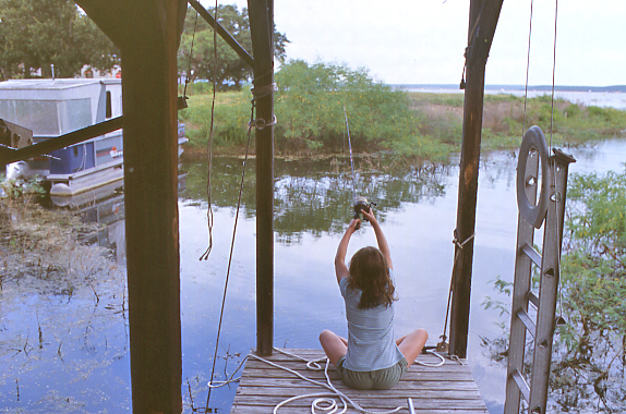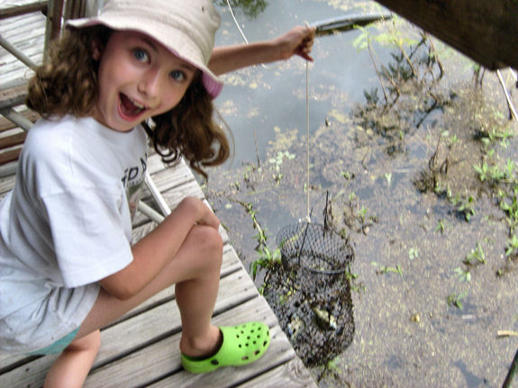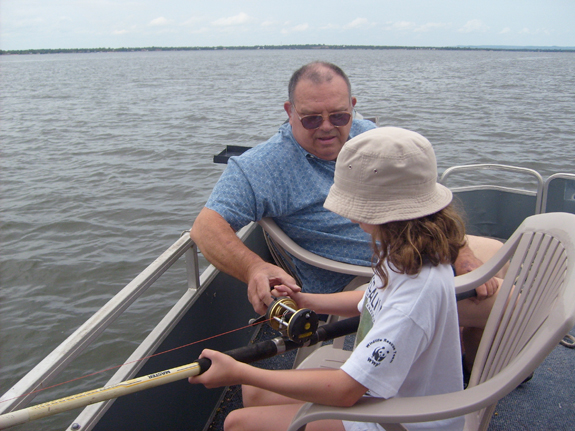 We first tried by going out on the lake in Howard's pontoon boat. There were no bites. From the dock Rebecca was more lucky and she bagged five carp. She felt sorry for the fish so she let them go. This was a sacrifice as Rebecca, unlike her meat eating grandfather, is keen on fish, be it cooked or raw.