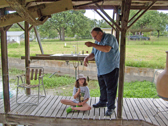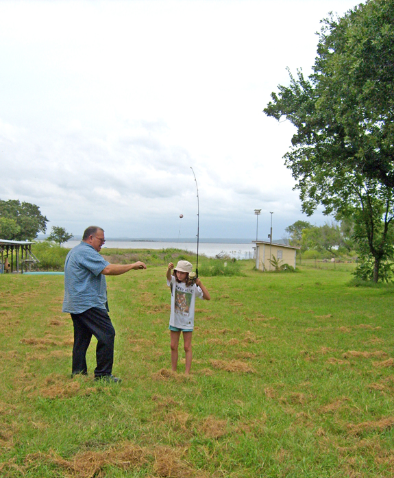 To my amazement Rebecca got excited about fishing when we arrived at my friend Howard Houston's Lake Buchanan property in Texas a few weeks back. Rebecca asked Howard to teach her to fish.