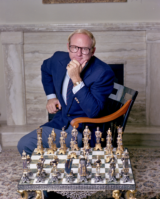 On a previous occasion I photographed him for Equity Magazine. We used a beautiful chess set as a prop. I conciously cropped out of my camera's viefinder a beautiful Giorgio de Chirico painting (in the photograph you can get a hint of the bottom frame). Years later when I photographed Kaiser who was backing a venture that proposed installing French fry vending machines in airports, etc I asked him about the de Chirico. Kaiser's house had gone up in flames a few years before. He looked at me sadly and told me it was gone as well as most of his extensive (one of Canada's largest) art collection.