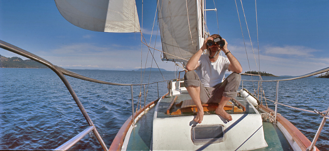 I suddenly thought of men with boats. I photographed author and doctor Kevin Patterson (Journey At Sea) and Robert Bateman with boats. But I was always nervous about getting seasick. I always had Dramamine in my pocket.