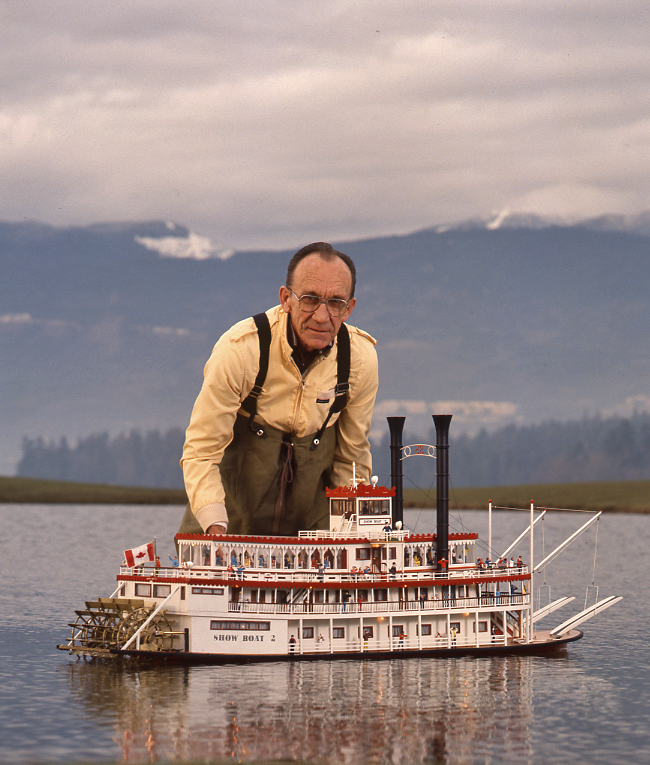 There is a moment in the play where I laughed (there are many other moments to laugh) Hubert tells Louis, "Bach would have never played like that as he was never on a riverboat steamer." Armstrong replies, "Of course, they had not been invented yet." This brought to mind a slide in my files featuring a man whose name I never recorded holding a model steam boat in Kitsilano Beach.