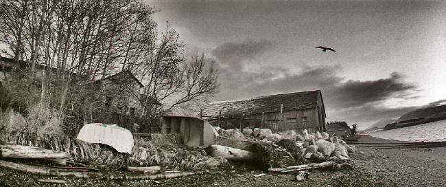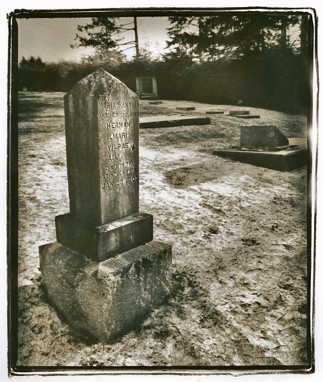 Looking back I remember two other indications of utopia. One was my visit to Thomas More's Chelsea Old Church in London where I photographed the reflections of gothic windows on an illustration of Thomas More that was on the wall. The other connection with utopia was an assignment in December 1994 to illustrate an essay by Taras Grescoe on the utopian Finnish settlement of Sointula on Malcolm Island, B.C. for the Georgia Straight. Photograph, above left is of the graveyard in Sointula.