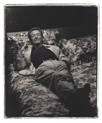The past seems rosy at times precisely because it is rosy. Editorial photography has changed. There is less time so the there is less fun to it. Sometimes I photograph actors before the writers have inteviewed them, or worse still the art director assigns me to shoot an actor and does not offer to show me the writer's copy. Some art directors, who don't read, assume that we photographers don't need to either. But once in a while (and this was more often in my rosy past) I get to work in tandem with the writer. And sometimes it may be a writer I specially like. The picture above of John Hurt came about because writer John Lekich and I have worked together often. I don't think this photograph would have happened if I had gone alone. John and I knocked at the door of Mr. Hurt's suite at the Hotel Vancouver. The big room had a huge canopied bed. I asked Hurt to pose in bed or as Lekich wrote in the March 12, 1998 issue of the Georgia Straight, "When he's asked to pose for posterity on a hotel bed in a manner indicative of total pleasure, his craggy features suggest that this is the best idea he's heard all day. "I'm delighted to do exactly as you wish, "he says with a smile. "Really you mustn't hold back."