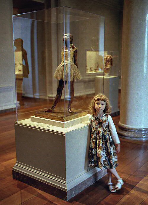 In June 1994 I visited the National Gallery in Washington DC and Rebecca posed by one, of the 28 or so posthumous existing bronze casts of the Degas work.