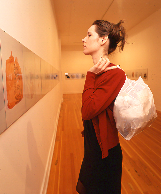 In 1999 I photographed photographic artist Kelly Wood for a review of her show Continuous Garbage Project for the Globe & Mail. In the photo here she is holding the last bag (March 14, 1999) of her March 15, 1988 to March 14, 1999 project. When I arrived at the Catriona Jeffries Gallery on Granville Street, Wood smiled at me and told me she was honoured to have a real (that's the word she used)photographer photograph her.