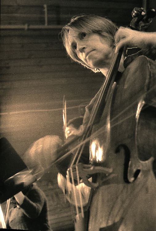 I thought of all the above as I had one heck of great time last night listening to composer/musician Colin MacDonald (above, left) and his Pocket Orchestra playing his music and that of three other contemporary composers. At least two, including Michael Nyman's Prospero's Magic had a bit of that Glass obsession and I was frustratingly trying not to "air" drive an exotic Italian car through Seattle at night. There were several reasons why the experience was pleasant. Besides Colin MacDonald on soprano saxophone, my friends, violinist Paul Luchkow (above, right) and cellist Laura Kramer (below, left) were part of the pocket orchestra.
