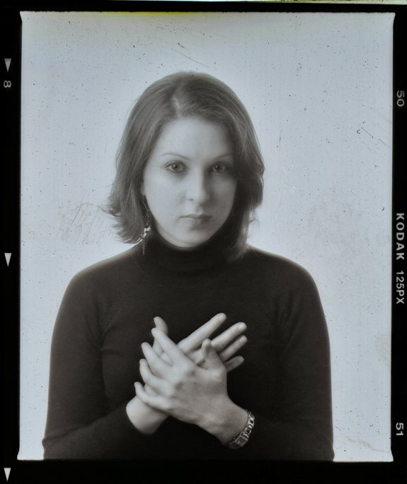I took this photograph with a plain white background and I then scanned the b+w negative as a colour negative. By doing this I am able to tint the result with whatever colour I wish. I then placed the negative on my flatbed scanner. On top of the negative I lay a sheet of white letter paper. I scanned it. The result was a negative that I reversed to make a positive. The positive showed the textures and deffects that the scanner read in the paper.